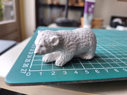 Beeldje van een wasbeertje, lengte 5.5cm en hoogte 7cm.